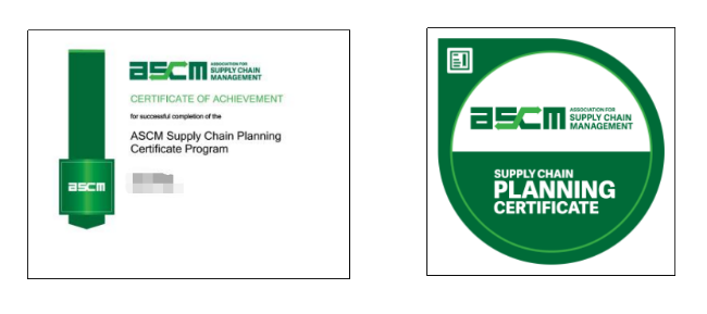 l 通过考试即可下载电子证书和徽章(需保持ASCM会员有效,否则徽章将在一年后失效。)